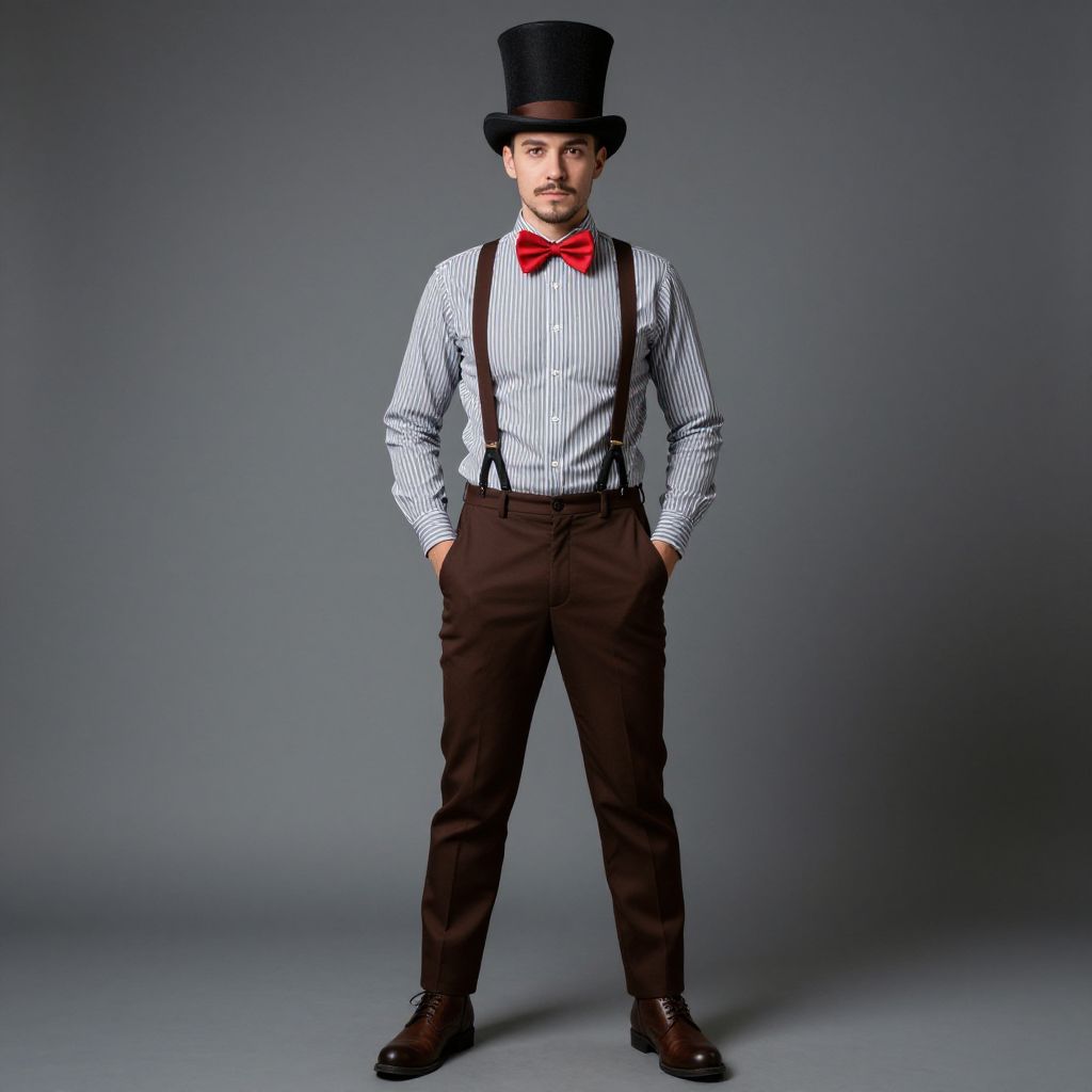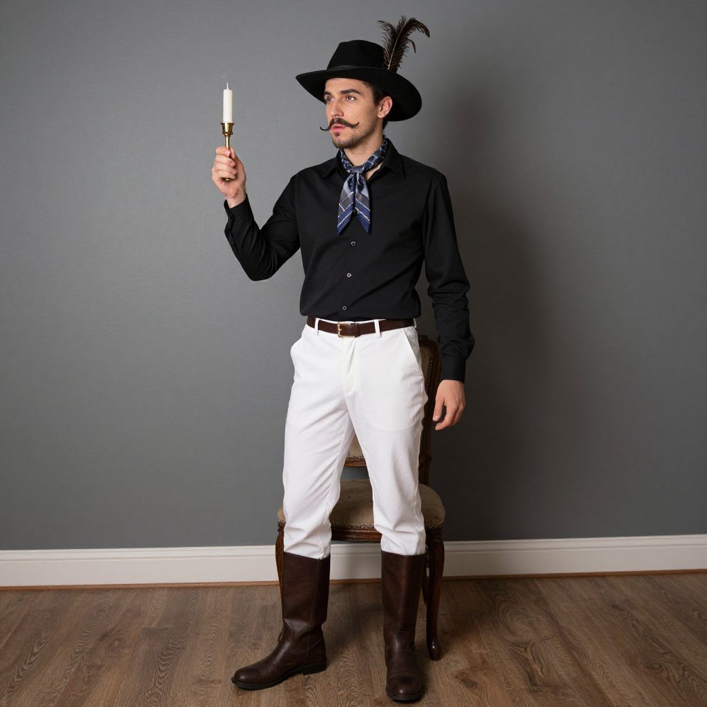 "king dee dee dee costume, 1boy, solo, male focus, crown, facial hair, looking at viewer, standing, full body, mustache, long sleeves, boots, cape, white pants, white shirt, black cape, pants, bowtie, hands on own hips, simple background, brown footwear, shirt, black bowtie, closed mouth, beard Realistic photo of casual sexy person with pretty face"