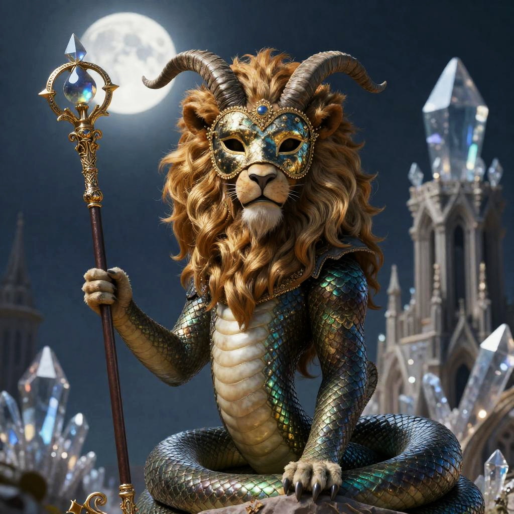 Baroque Griffin King in Crimson Courtyard