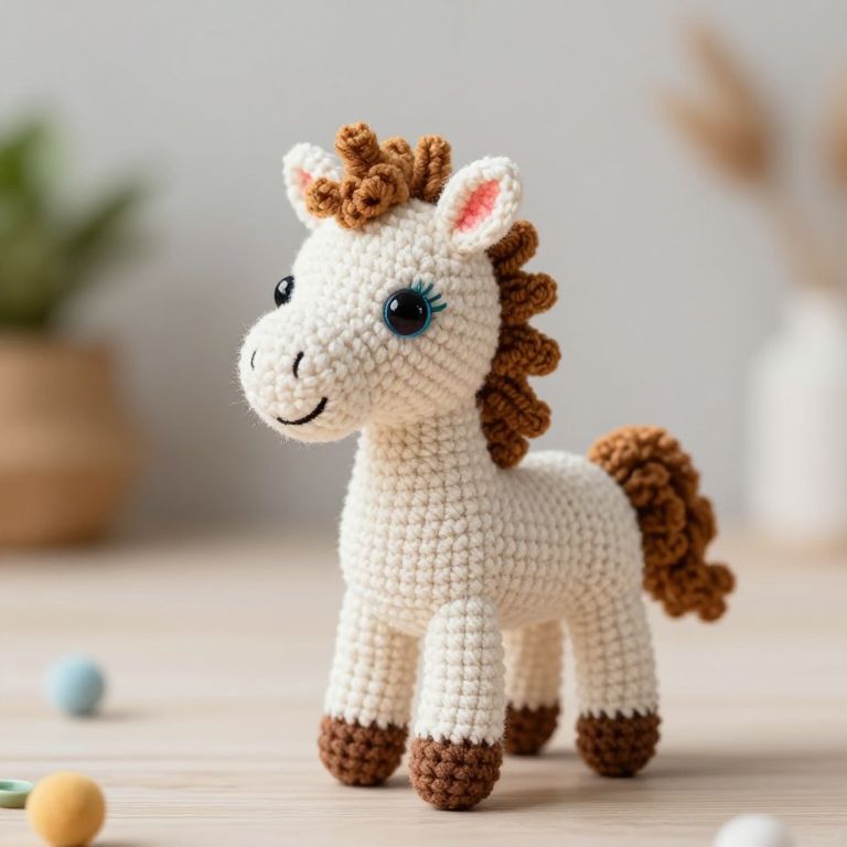 A charming crochet unicorn doll, adorned with a vibrant pink tutu and rainbow accents, exudes a whimsical and handmade charm perfect for toddler girls, blending the playful artistry of stuffed animals with the cozy warmth of nursery room decor.