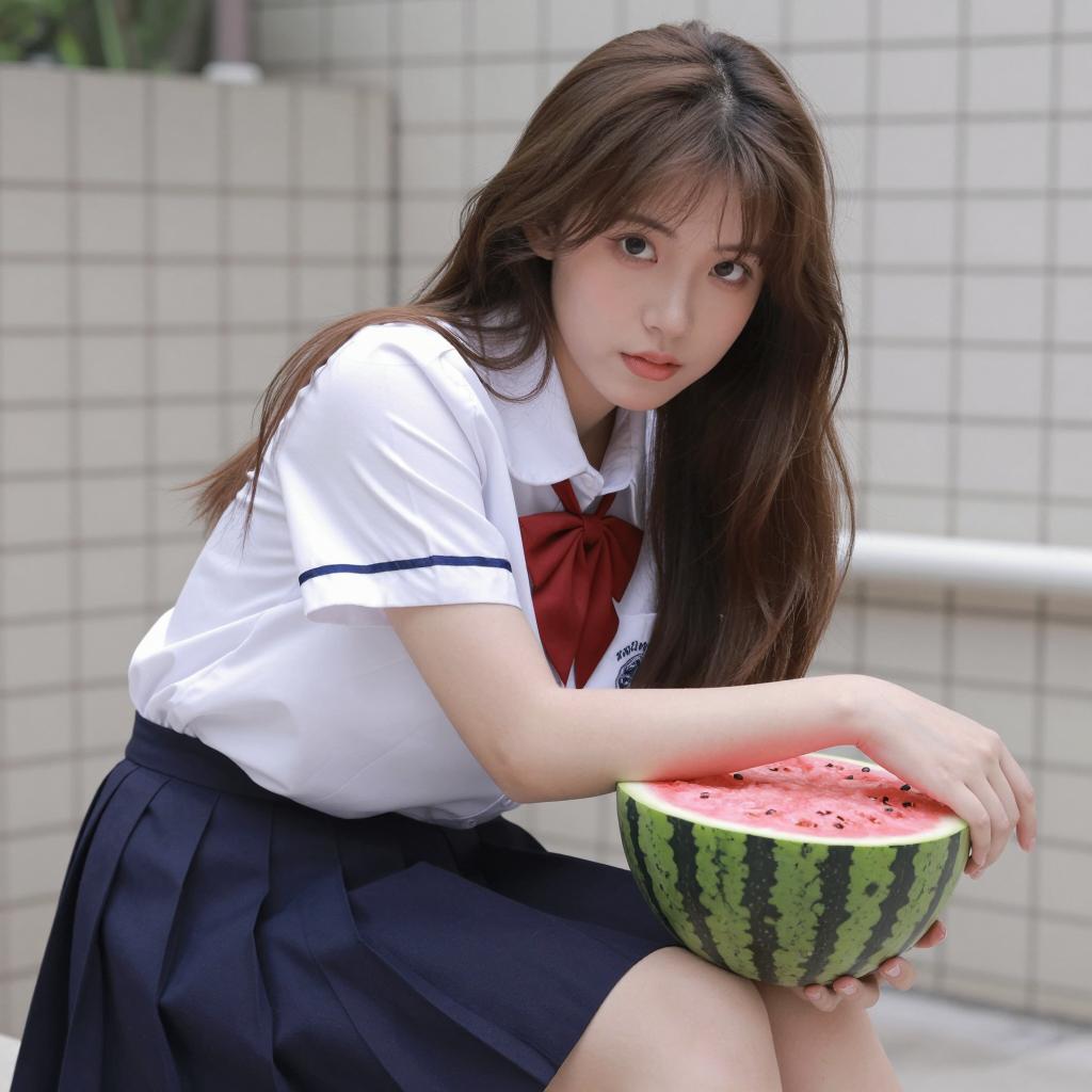 Young Woman Enjoying Watermelon in Nature