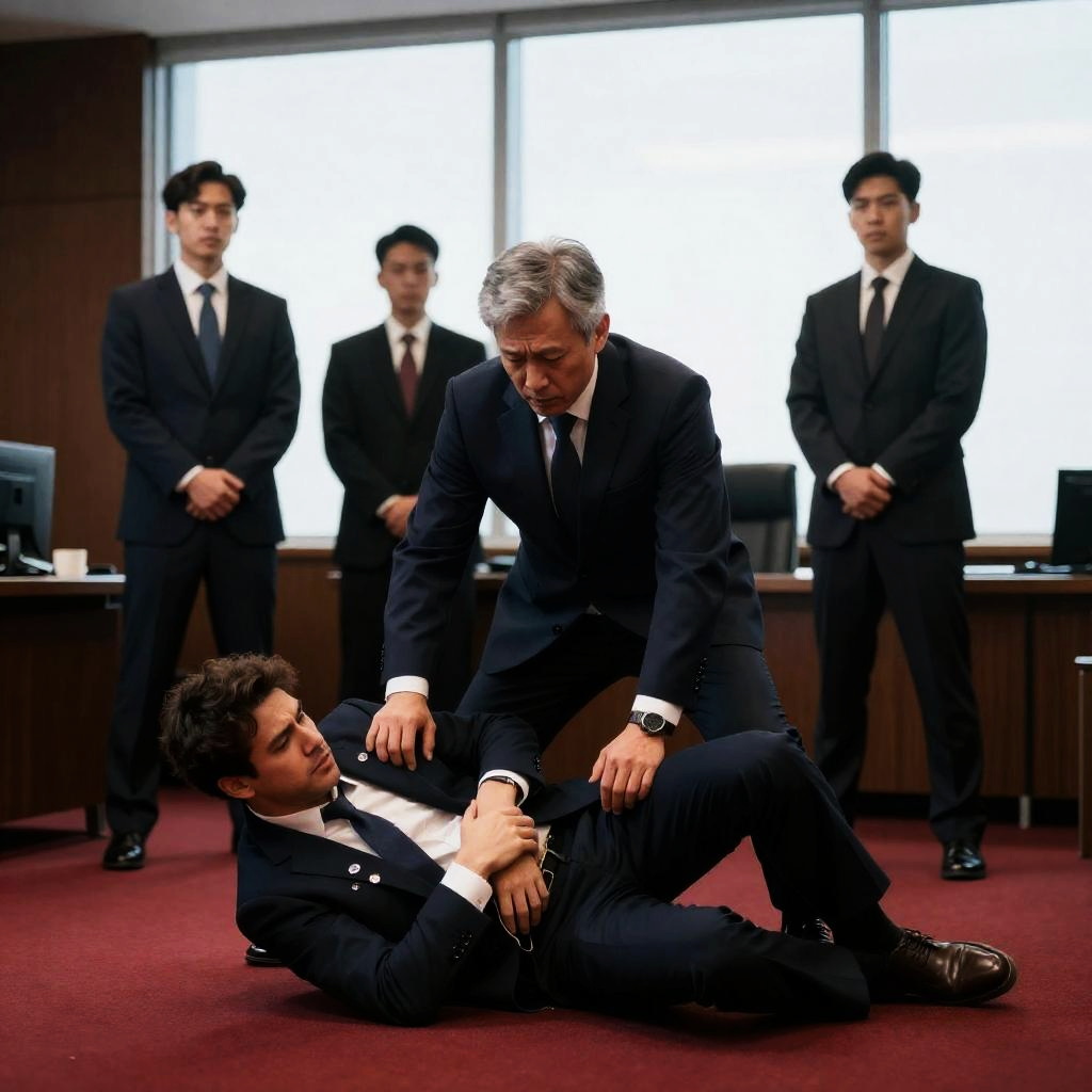 Dramatic Scene of Three Men in Suits