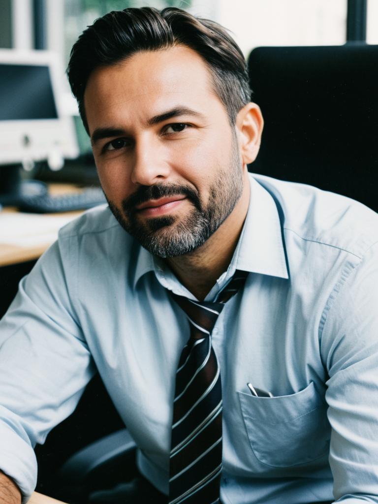Man in Summer Professional Outfit, candid portrait at workplace