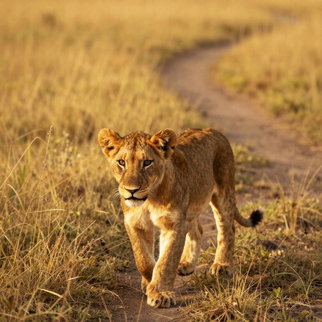 Curious Lion Cub in Golden Savanna