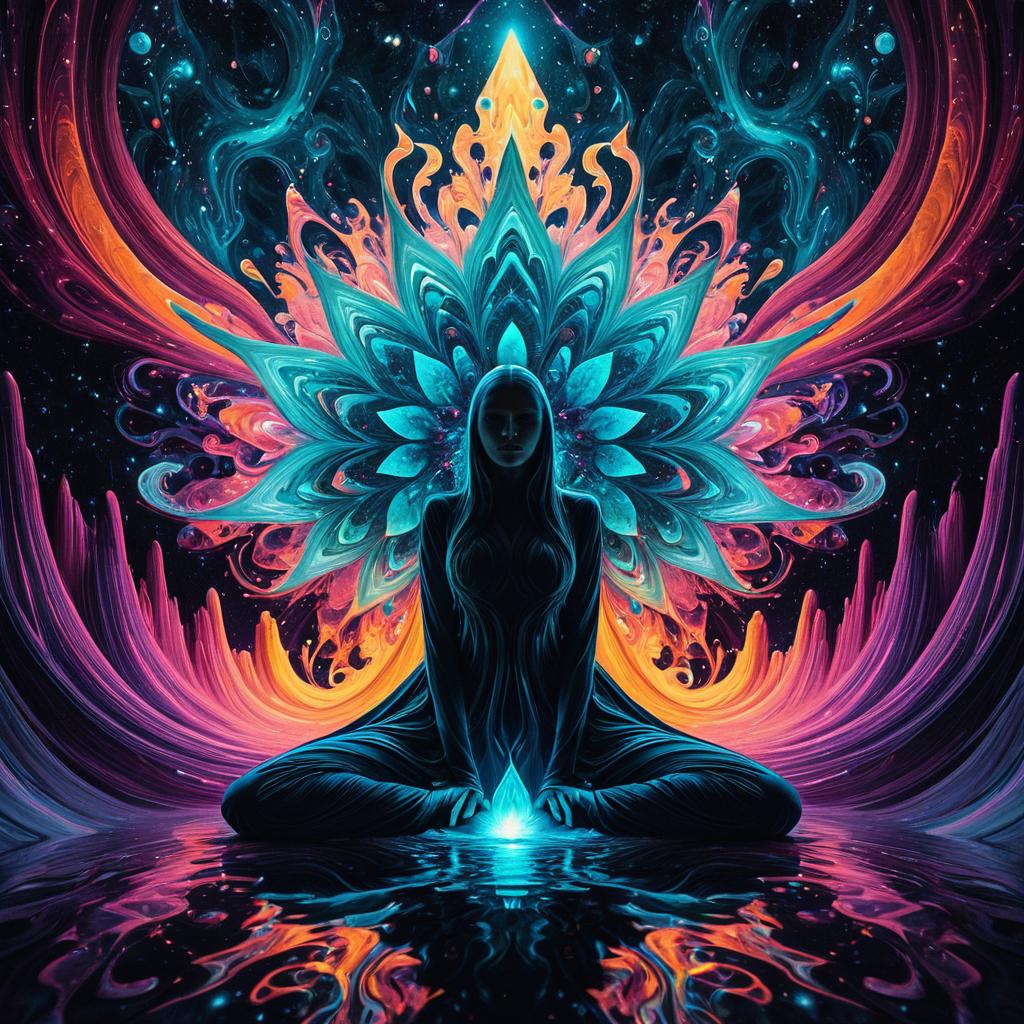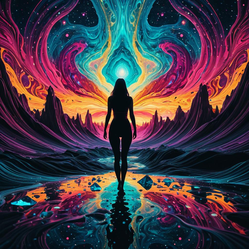 Dynamic form, woman, vibrant, palette of dreams, fluid waves, fluid movements, seamless transitions, state of the art visuals, otherworldly serenade, captivating transformations, high depth, high resolution, ultra-detailed, surreal artistry, mesmerizing fluidity, otherworldly beauty.