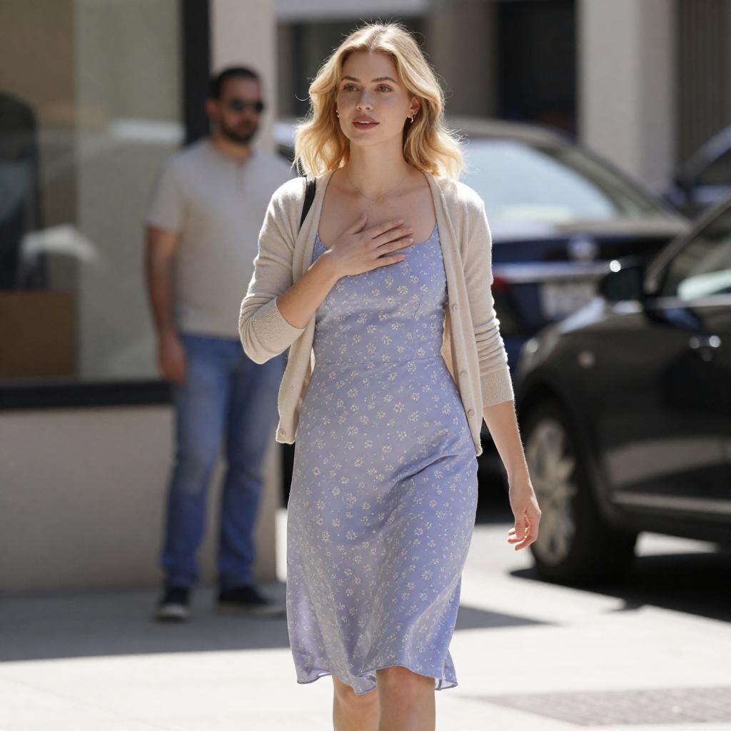 Kneeling Blonde in Sheer Top