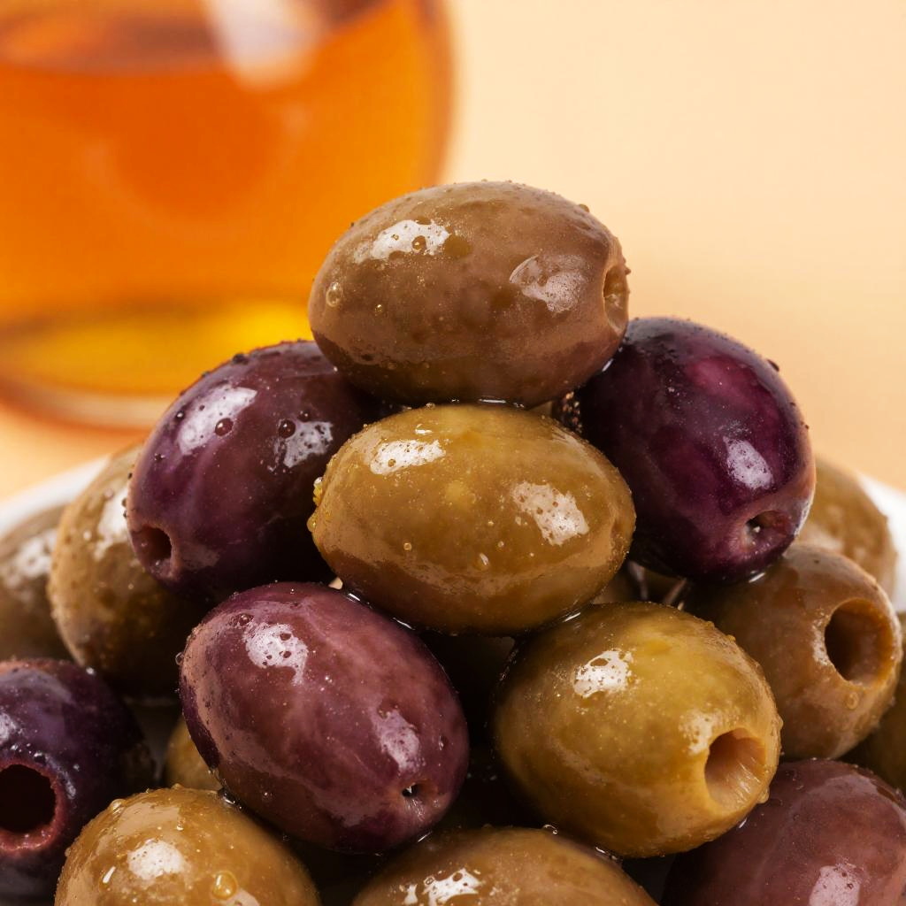 Close-Up of Glossy Mixed Olives