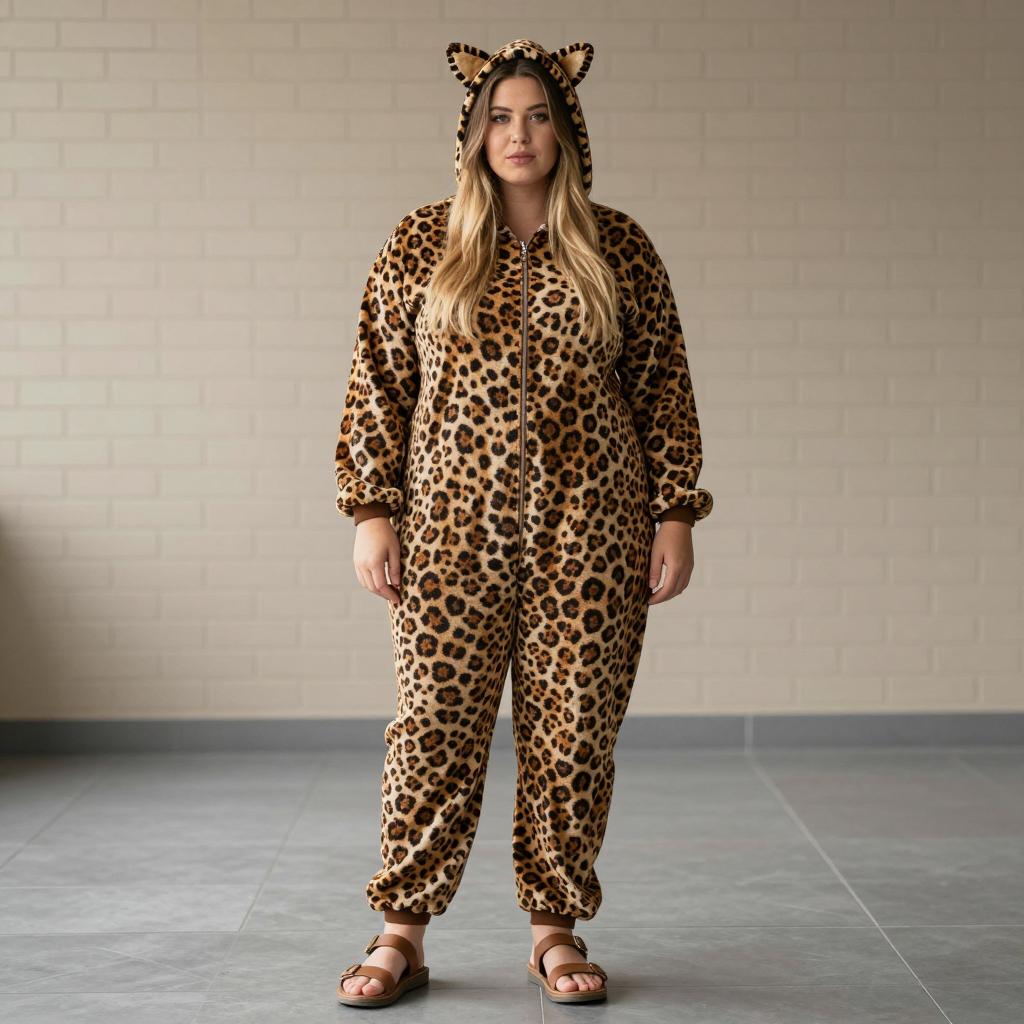 Chic Plus Size Woman in Leopard Onesie