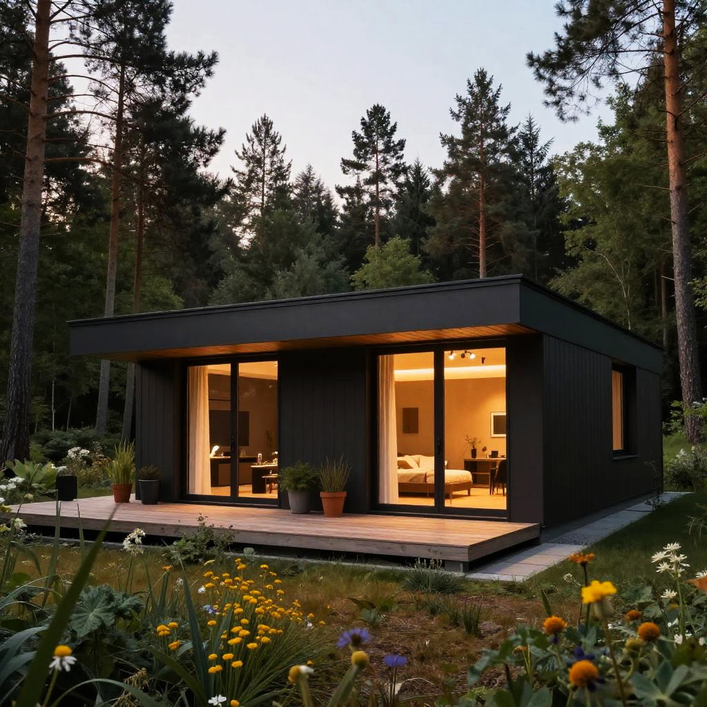 Modern Forest Bungalow at Dusk