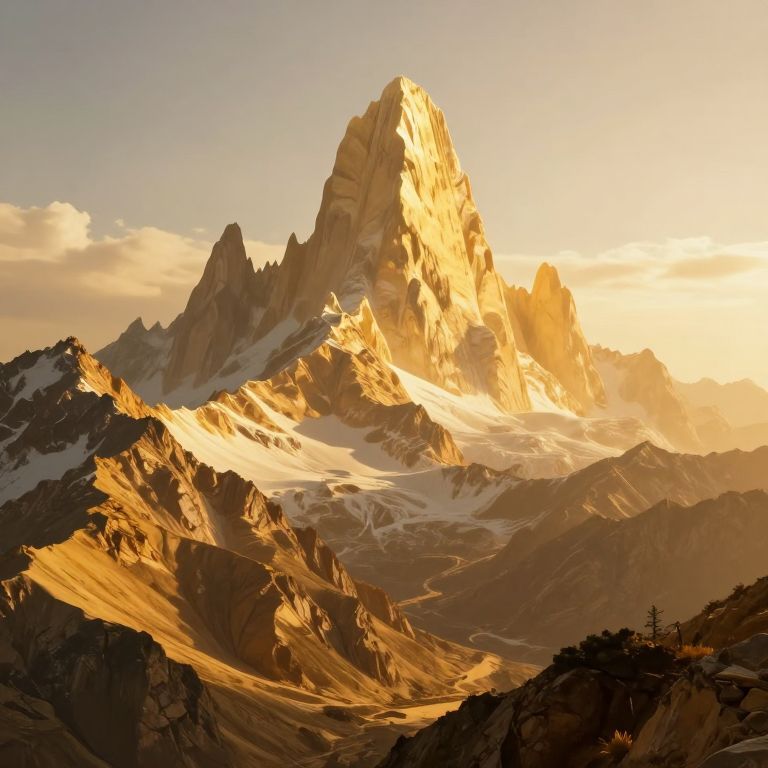 Golden Mountainous Landscape with Divine Glow