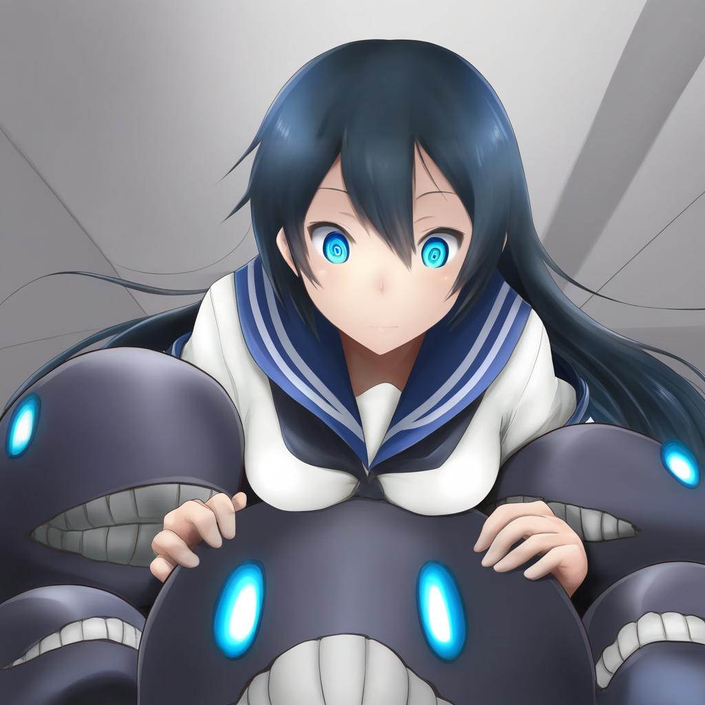 Ha-class destroyer, kantai collection, 1girl, blue eyes, long hair, short hair, serafuku, serafuku, by artist andou you, leet