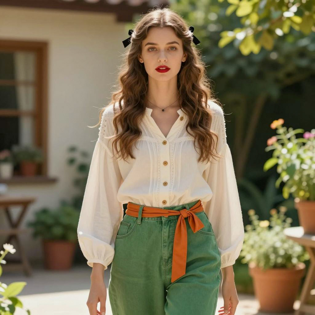 Photorealistic Young Woman in Courtyard