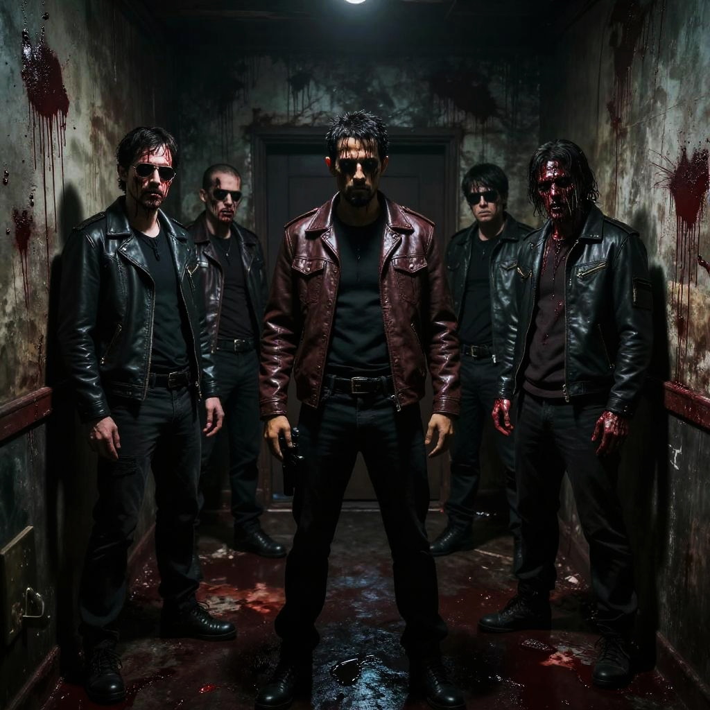 Cartel.gore brutal cartel street massacre in neon-lit alley, intense gore with visible injuries, broken glass and debris, rain-soaked pavement reflecting lights, cinematic ultra-realistic style, dark and gritty urban crime setting