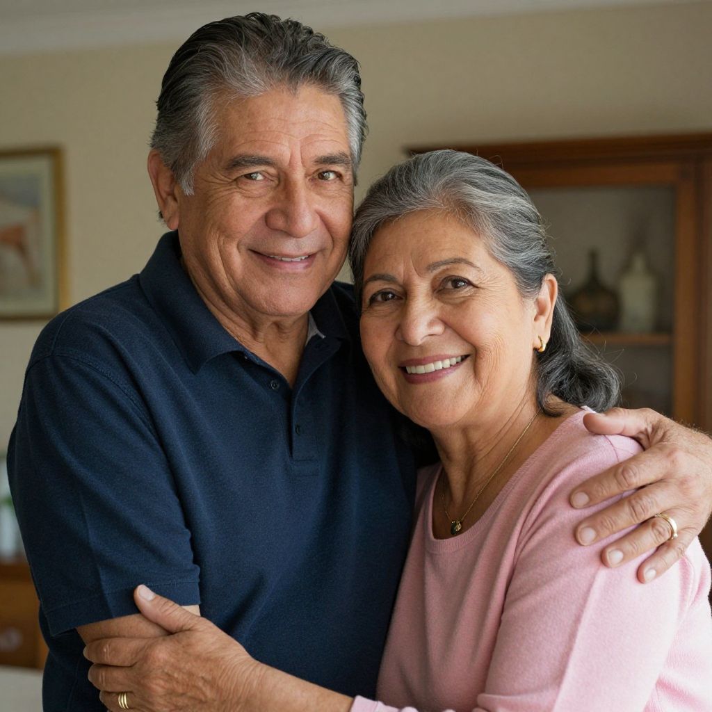 Joyful Embrace of Older Latino Couple