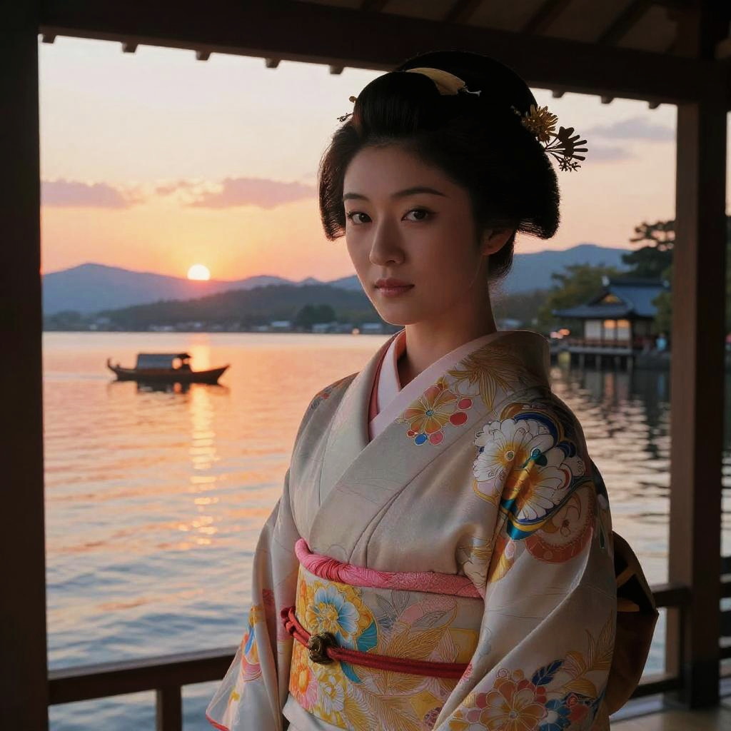 Traditional Japanese Woman at Sunset