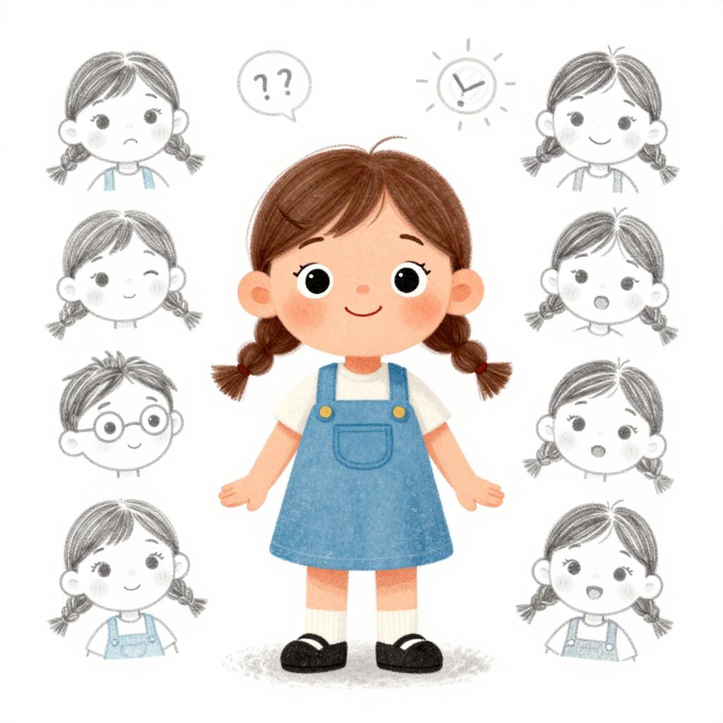 Underpainting A cute and beautiful little girl, illustration, childrens book, fullbody shot, various emotions and expressions,