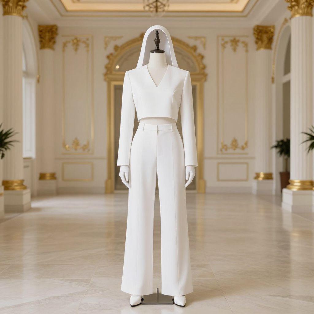 Elegant White Costume in Gold Room