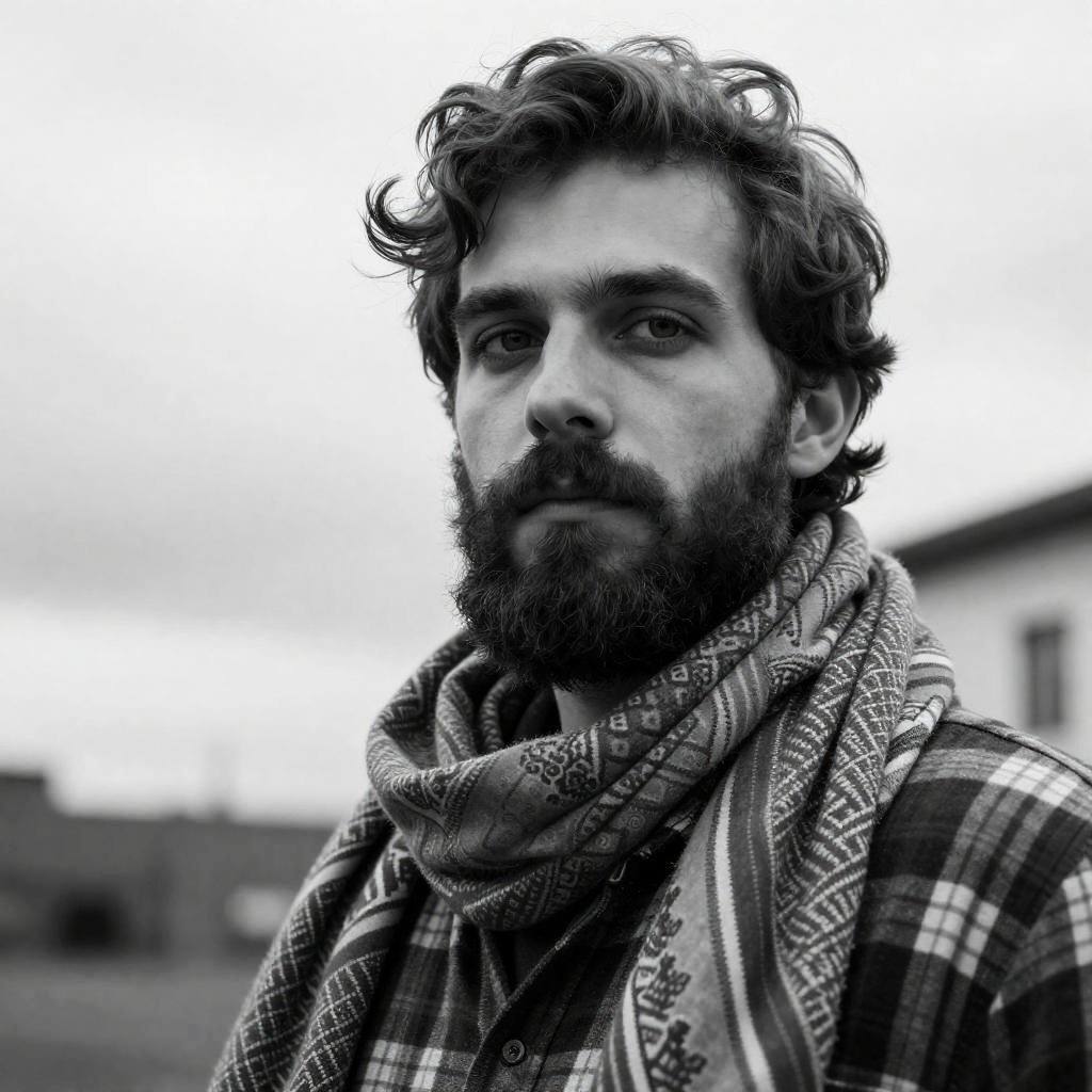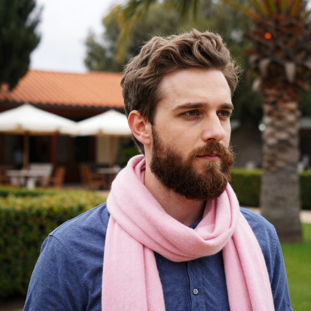 Bearded Man Wearing Pink Scarf Outdoors