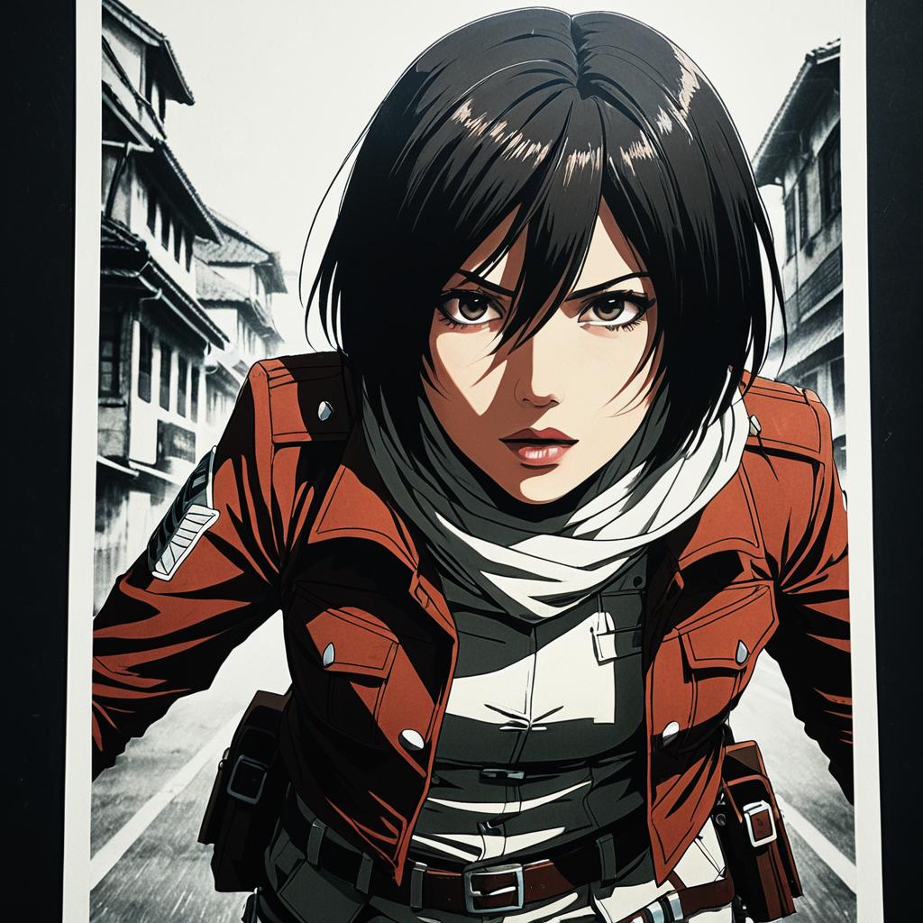 Mikasa, beast, Attack on Titan, anime style, poster, high quality