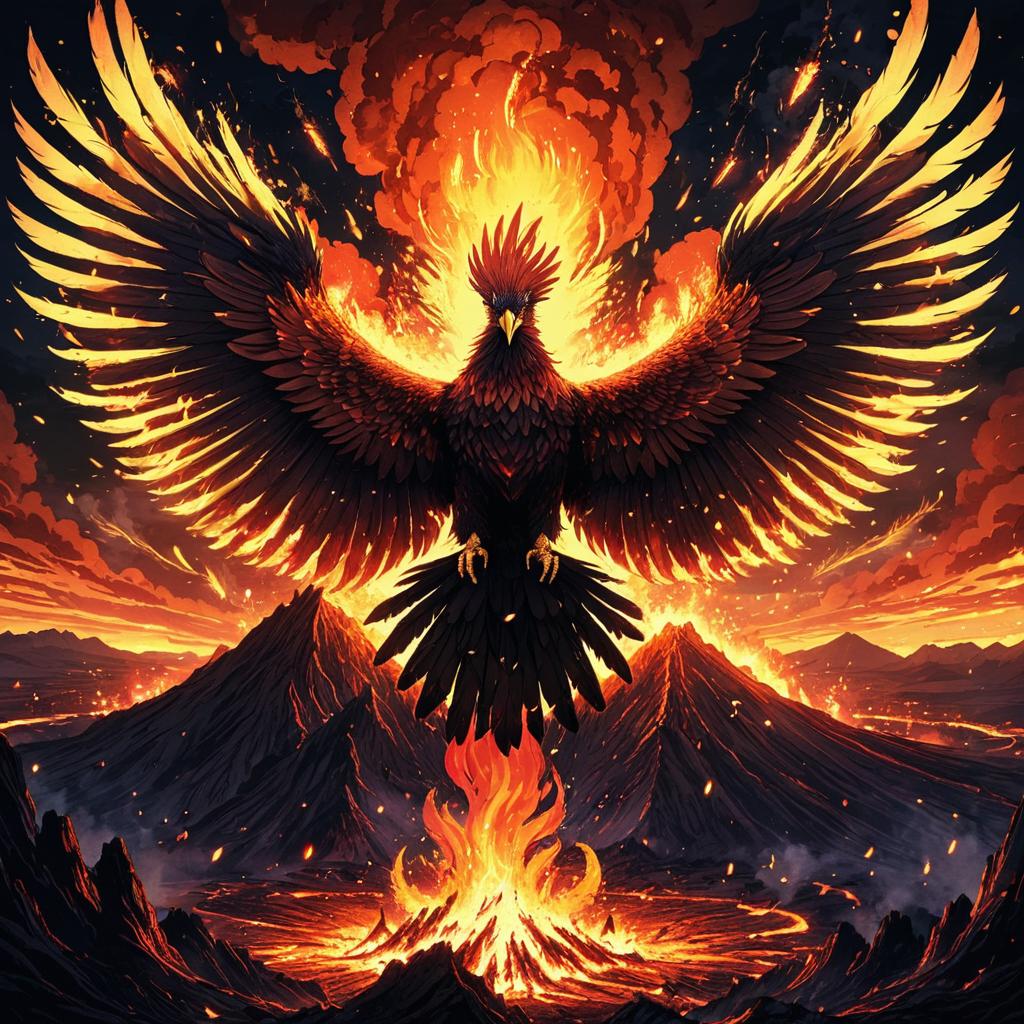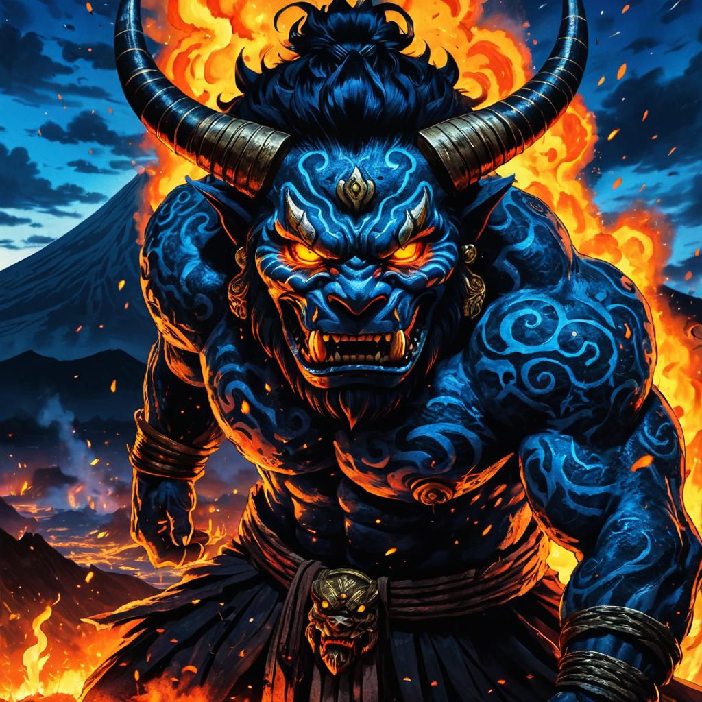 Eerie Oni in a Fiery Volcano Scene