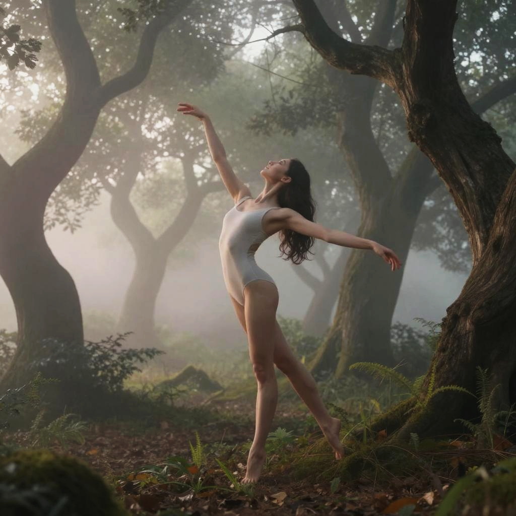 Graceful Elongated Limbs in Misty Forest