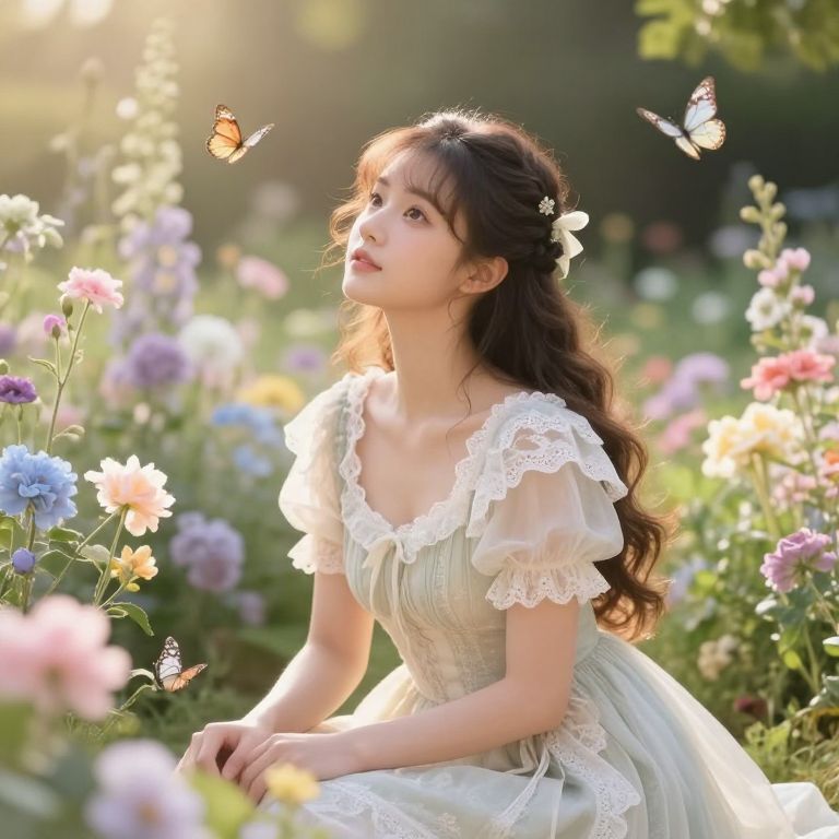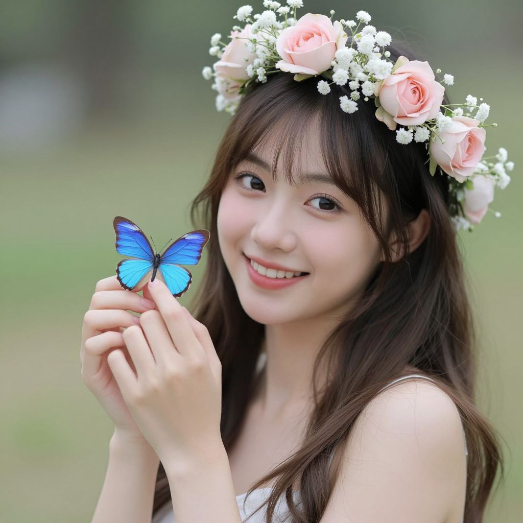 A poignant portrait of a tattooed girl with intricate floral tattoos adorning her arms, her gaze filled with a quiet, melancholic longing, She stands in a soft, shadowed space, her body language relaxed yet heavy with emotion, as she gazes at a beautiful, cybernetic butterfly hovering before her, The butterfly's delicate metallic wings shimmer faintly, its mechanical parts a stark contrast to the softness of the girl's expression, Her eyes, dark and reflective, hold a mix of sadness and wistfulness, as if she’s witnessing something fragile, yet unreachable, The tattoos on her arms—lush flowers and delicate vines—intertwine with the soft light that filters through the scene, adding a sense of both beauty and impermanence to the moment, Short-sleeved shirt, The background is blurred and minimalistic, emphasizing the tender, emotional interaction between the girl and the butterfly, The monochromatic palette heightens the sense of nostalgia and introspection, capturing the bittersweet longing in the girl's eyes, as if she’s caught between two worlds—the organic and the artificial, The scene exudes a deeply sentimental atmosphere, filled with a subtle sadness and beauty, The tattoos and the butterfly is shining brightly in amber