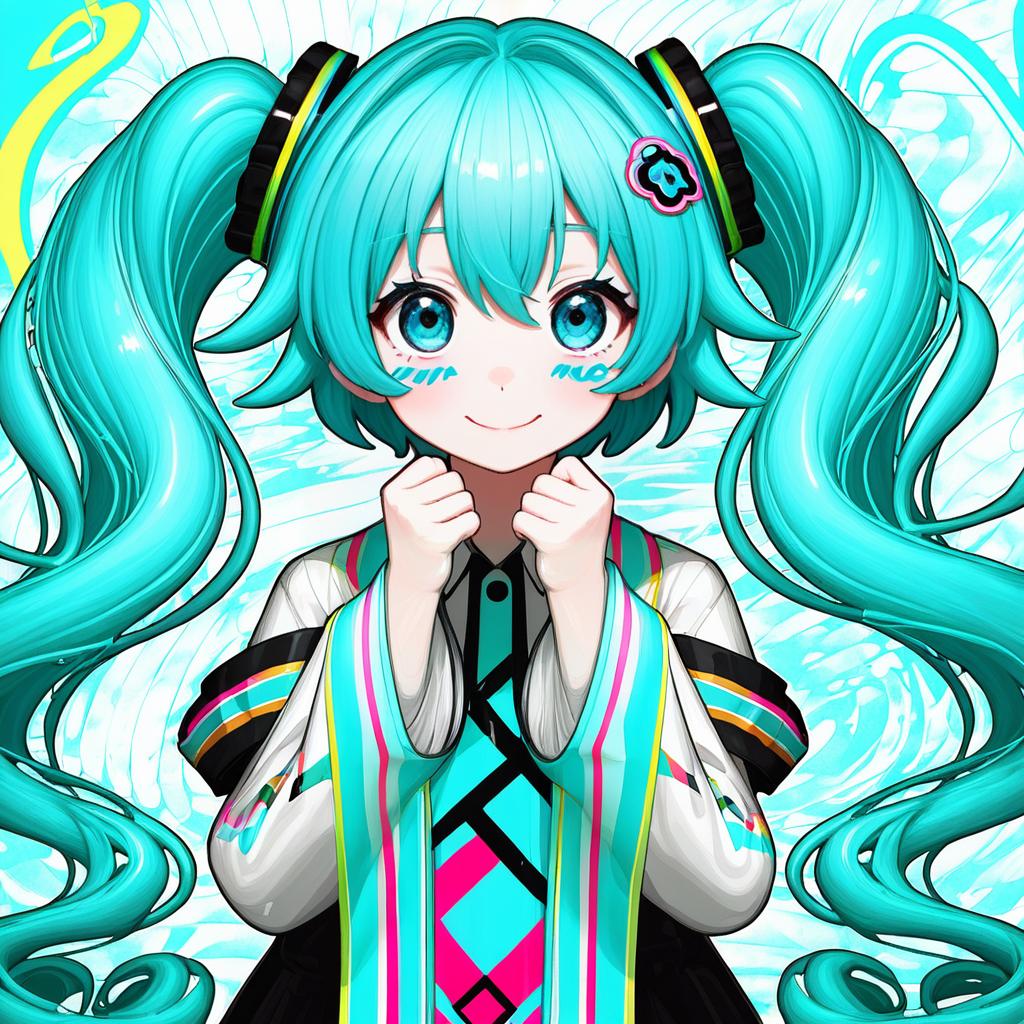 Illustration of Hachune miku, vocaloid in the style of Tokkyu