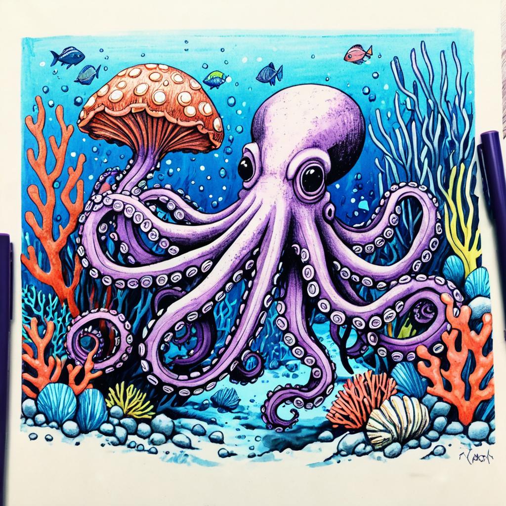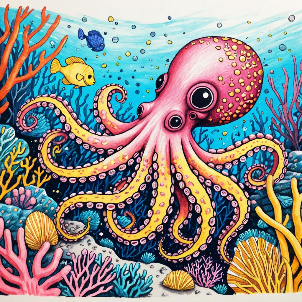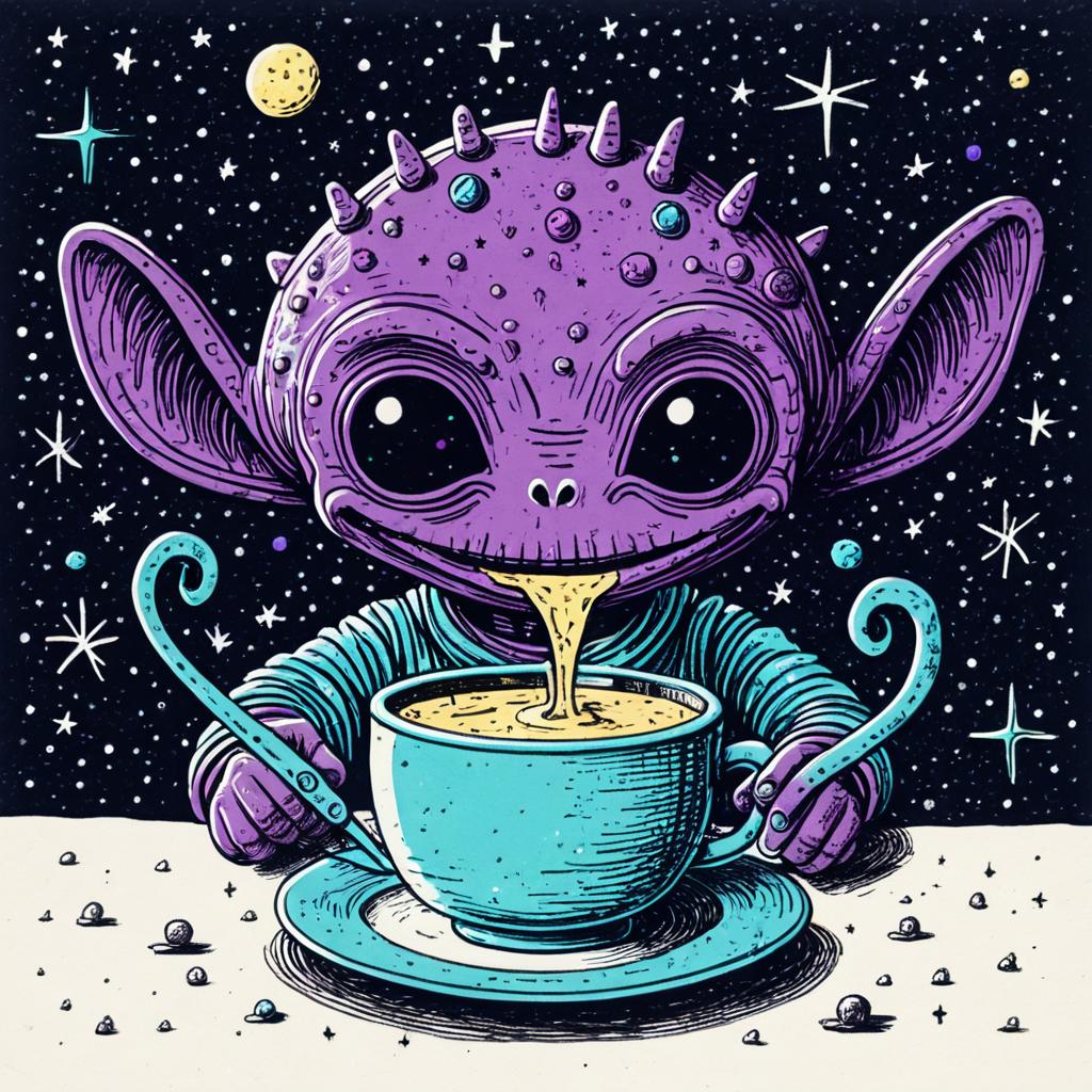 (child's drawing:1.4) of a flying kite, crayon drawing, windy afternoon with colorful clouds, purple and blue