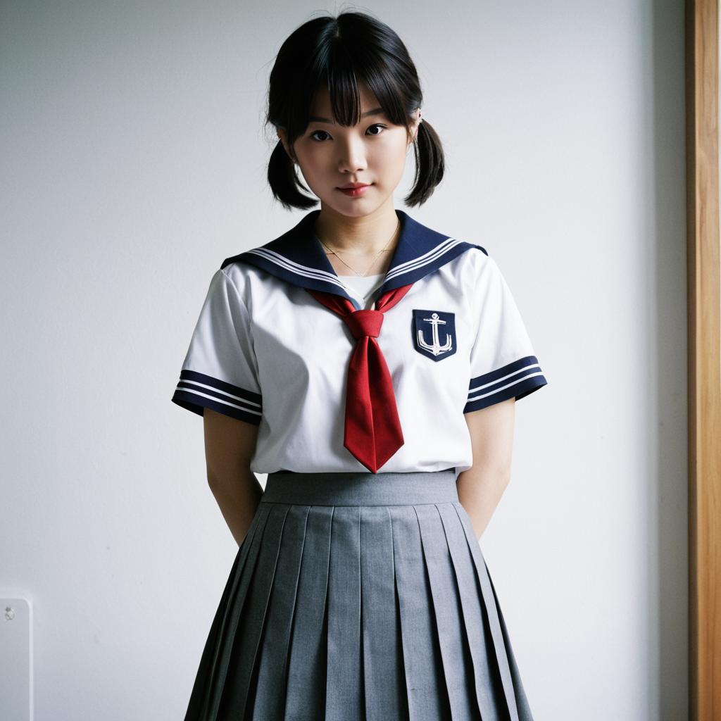 Masterpiece, best quality, 1girl, watanabe you, uranohoshi school uniform, school uniform, short sleeves, pleated skirt, white serafuku, grey skirt, grey sailor collar, tie clip, red neckerchief