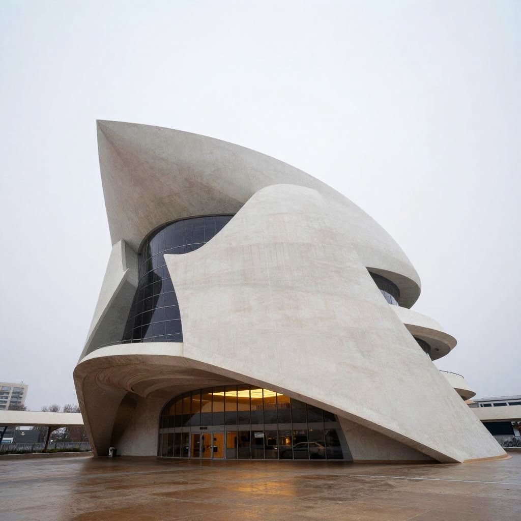 GaudÃ-Inspired Curvilinear Brutalist Facade at Plaza