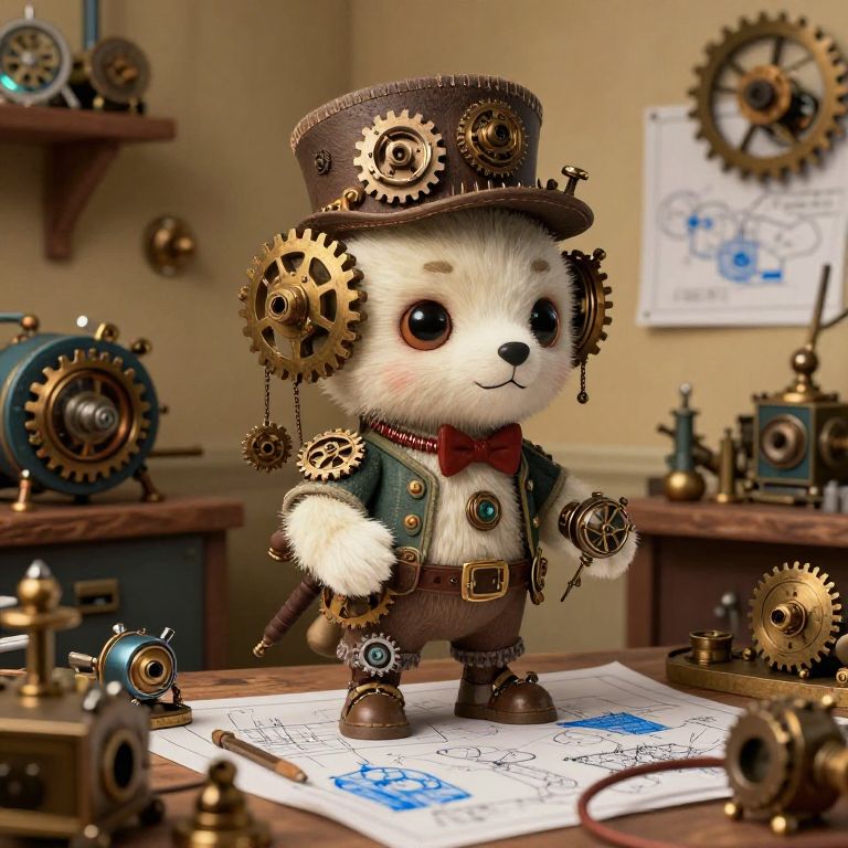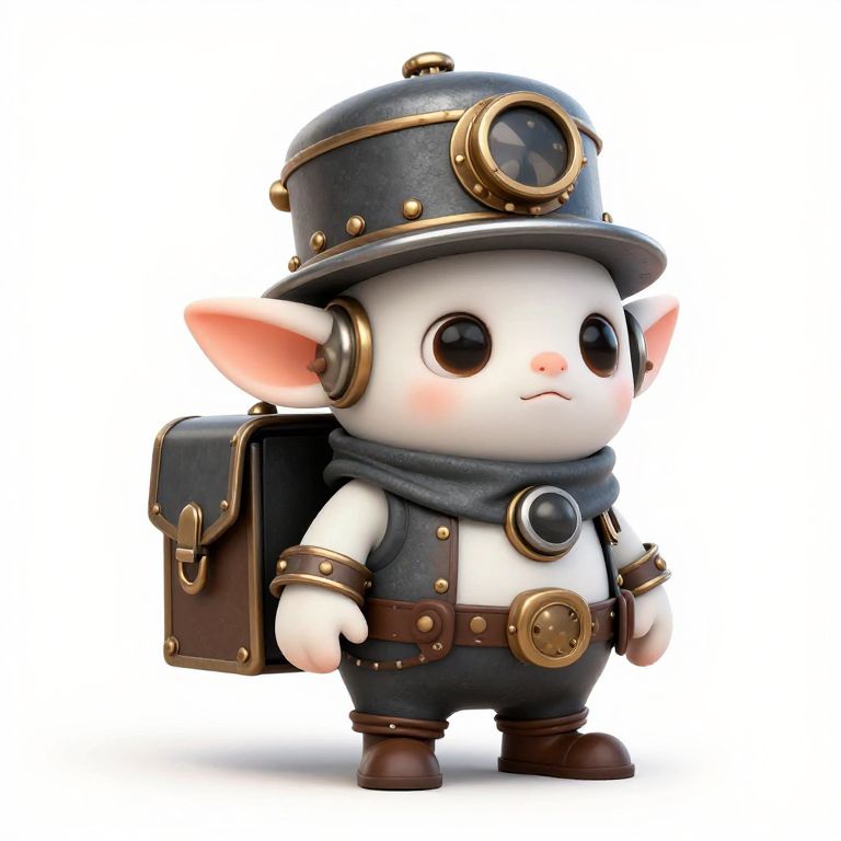 Extremely Detailed plain white background. D&D art style. Industrial. Steam Punk. Proper. Cute. Tiny. Adorable. Loyal. Small. Messenger. Salt Goblin.,