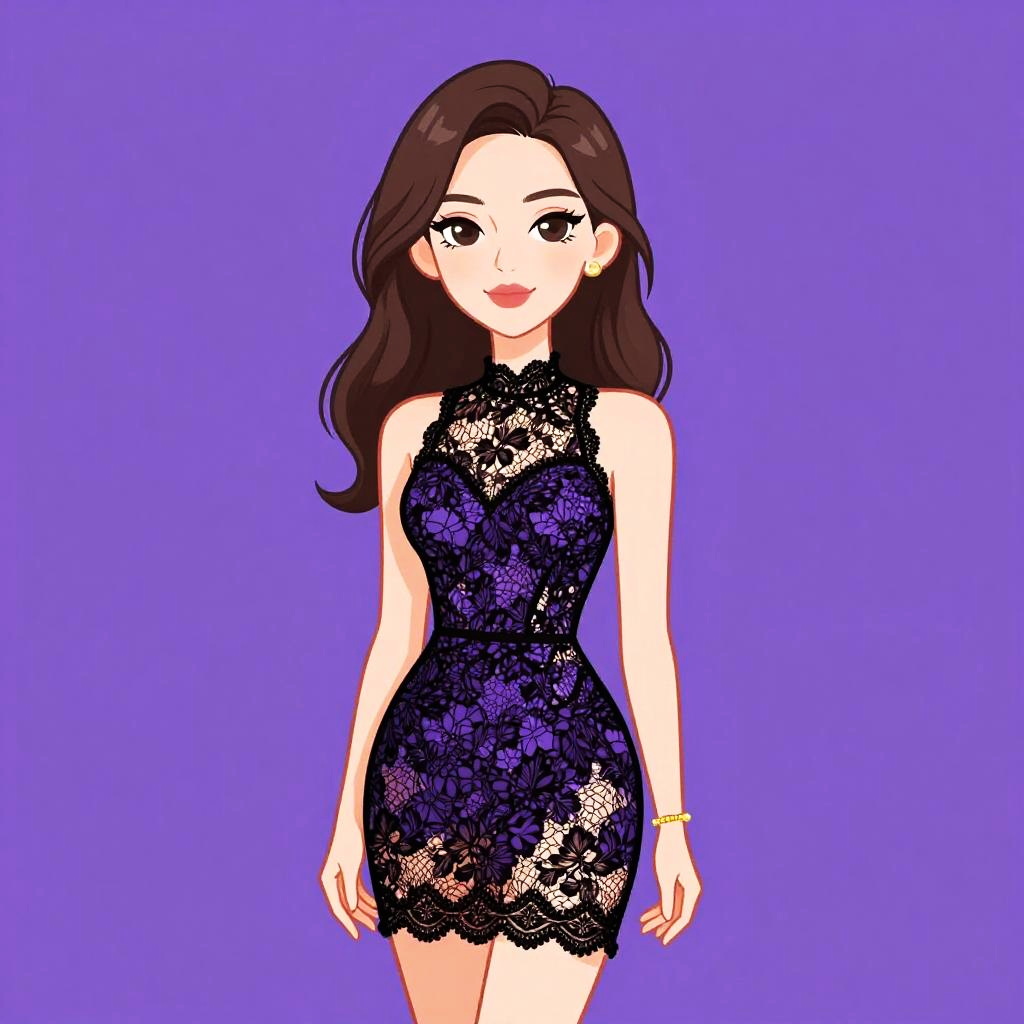 Elegant Woman in Lace Evening Dress