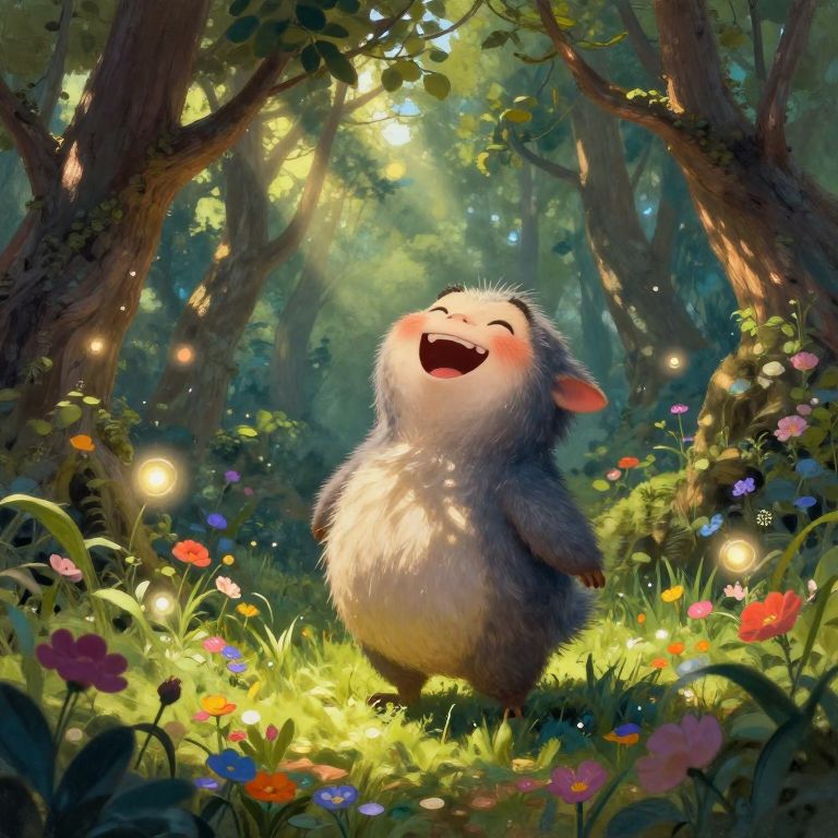 Whimsical Creature Laughing in Forest
