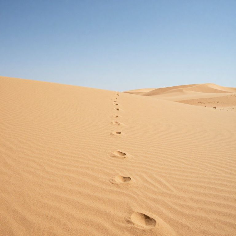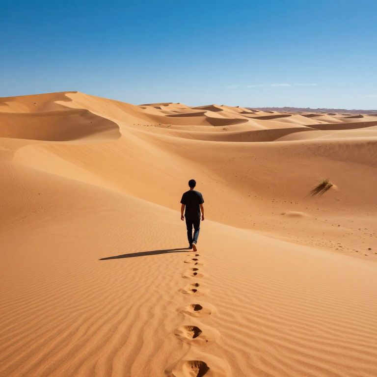 In a surreal desert where shifting sands mirror the soul's spectrum, a solitary figure walks through a kaleidoscope of emotion, leaving behind footprints that trace the journey of introspection and transformation.