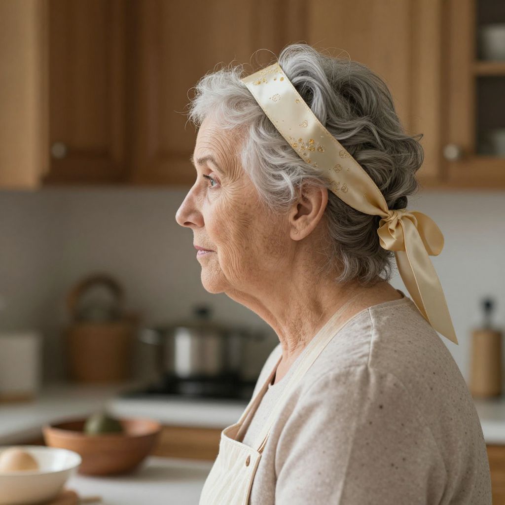 Grandmother Looking Side Ribbon Mascot head gray hair wife housewife cook woman female senior adult nanny granny grandmother retro
