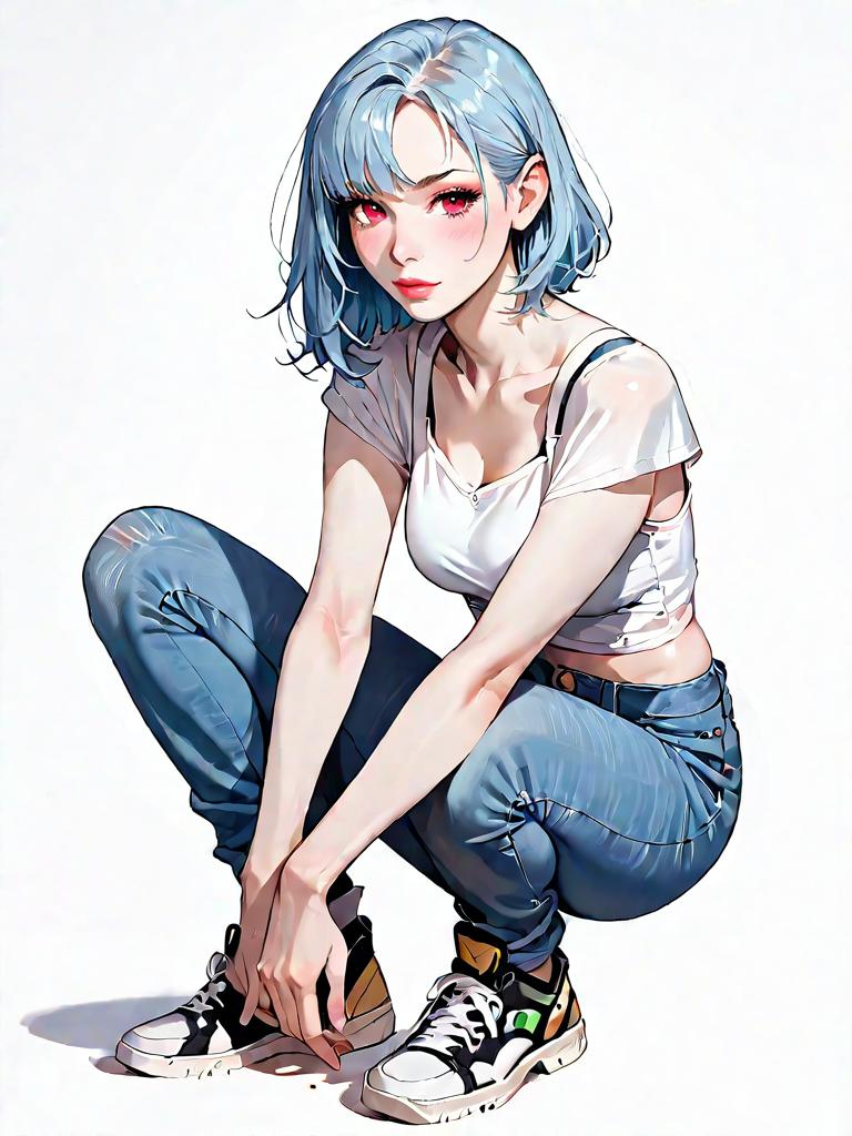 1girl, source_comics, realistic face, full body shot, Woman, casual sporty, cropped grey t-shirt, relaxed fit, short sleeves, green drawstring shorts, relaxed fit, side pockets, yellow baseball cap with purple logo, plain white background