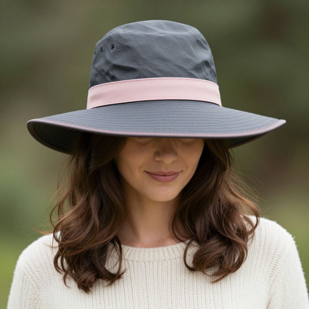 Woman in Pink Band Waxed Rain Hat