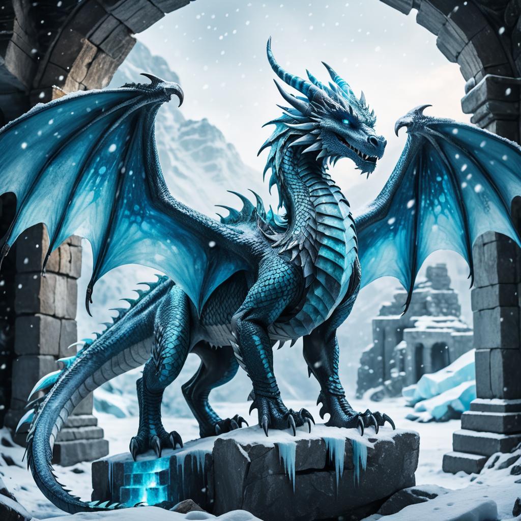 Majestic Icy Dragon in Snowy Stone Ruins