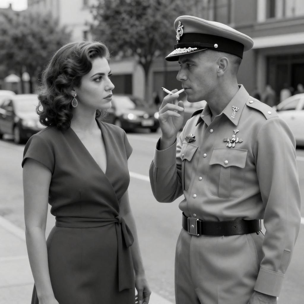 Serious Encounter: Military Officer and Woman