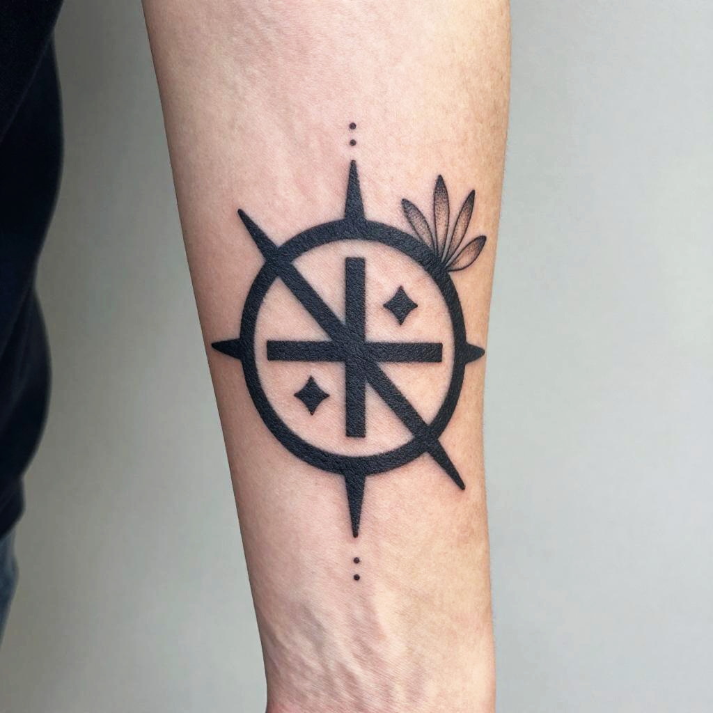 V tattoo designs inspired by ancient symbols and modern minimalism, combining bold black ink with delicate dotwork and floral accents, capturing a balance of strength and elegance suitable for a wrist or ankle tattoo.