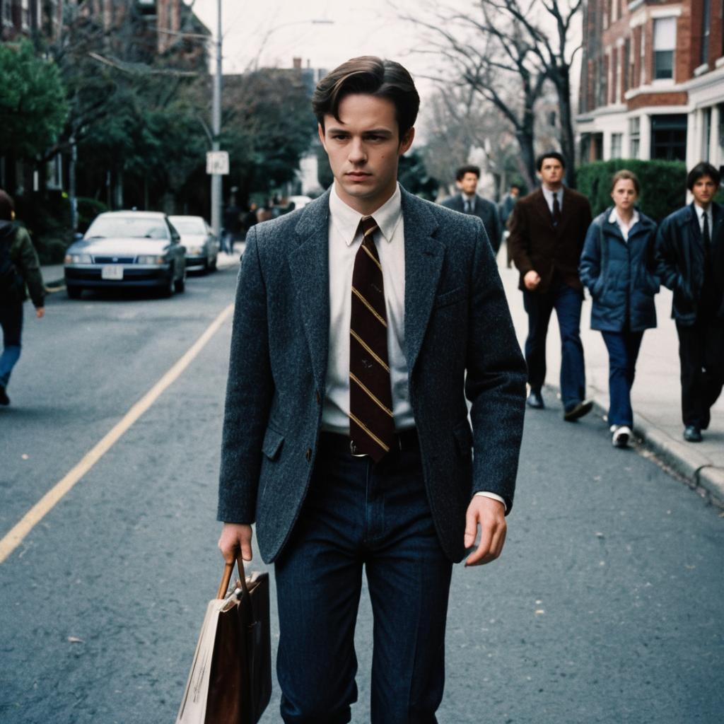 Rory Gilmore Outfit Costume, young man in a jacket and tie walking down a street
