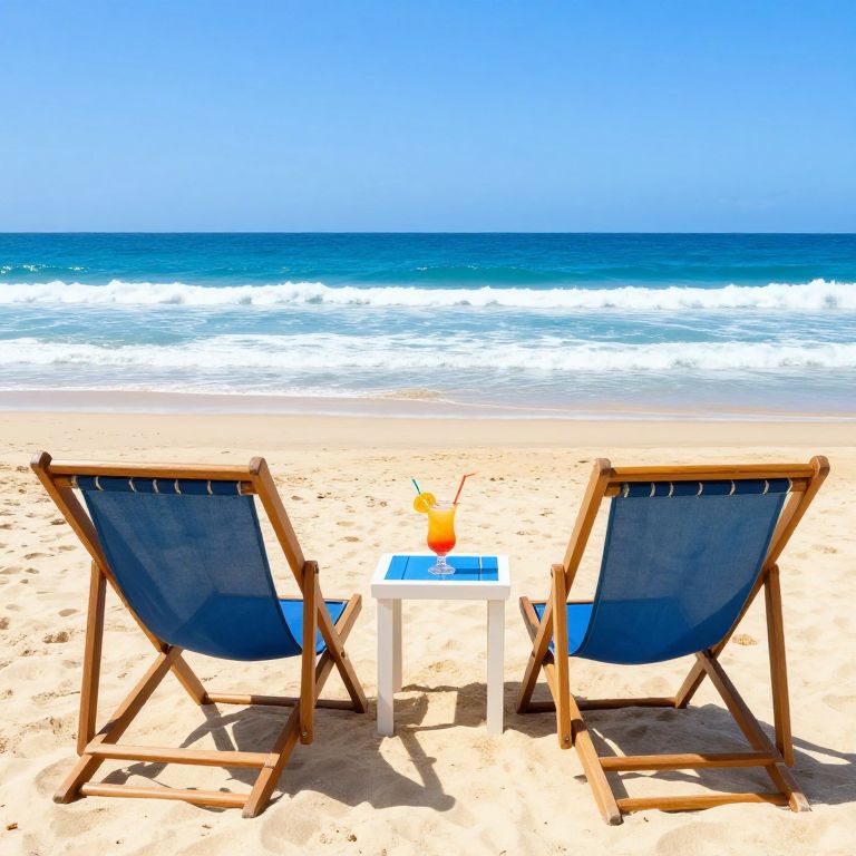 Sunlit Beach View with Deck Chairs