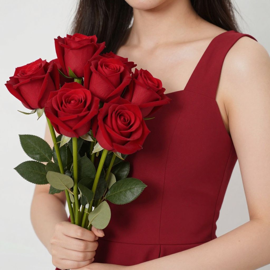 Close-Up Woman in Red Rose Dress
