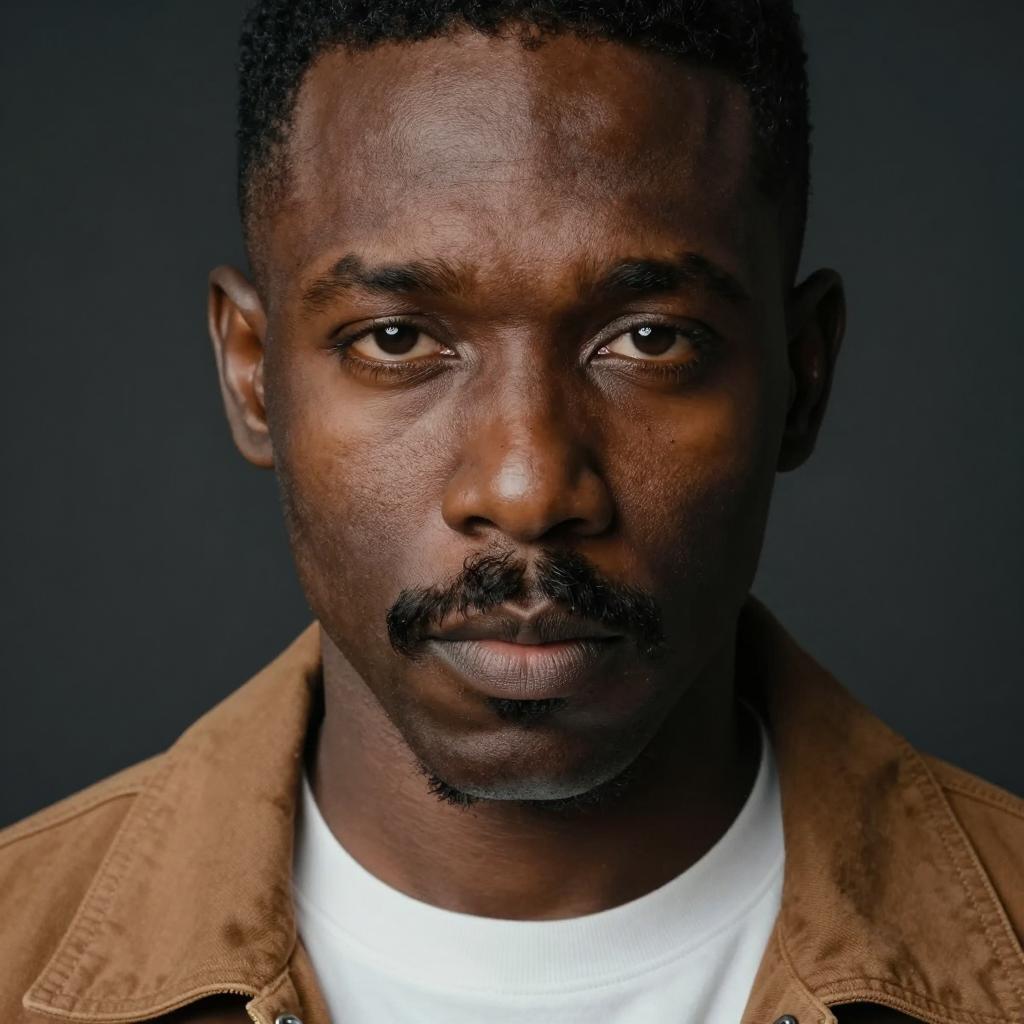 Photograph of an African-American man in a brown suit, white shirt, and patterned tie, holding a white and blue megaphone. He has short black hair, a serious expression, and stands against a dark gray background.
