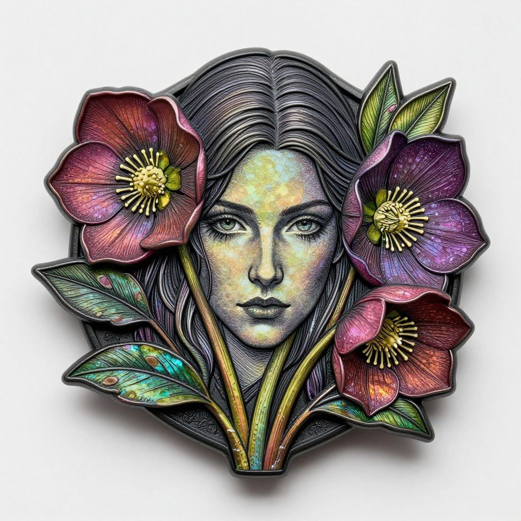 Line art trinket depicting a Hellebore M├йret Oppenheim, natural, shimmering, vibrant, gothic, rpg, 1400ad, ultra detailed, detailed, immersive, reminiscent of high fantasy RPG games, HD, masterpiece, best quality, hyper detailed, super realistic, perfect face, perfect hands, award-winning, professional, breathtaking, linquiverasavannah Desertsnowy weathertypographic art . stylized, intricate, artistic