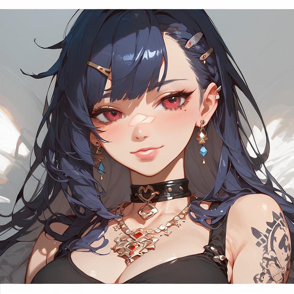 Score_9, score_8_up, score_7_up, score_6_up, score_5_up, score_4_up, source_anime, 1girl, solo, simple background, in the forestsmug, black dress, white sleeves, orange bow, purple capelet, black pantyhose, frills, blue hair ornament, standing, selfie, black hair, blue eyes, twintails