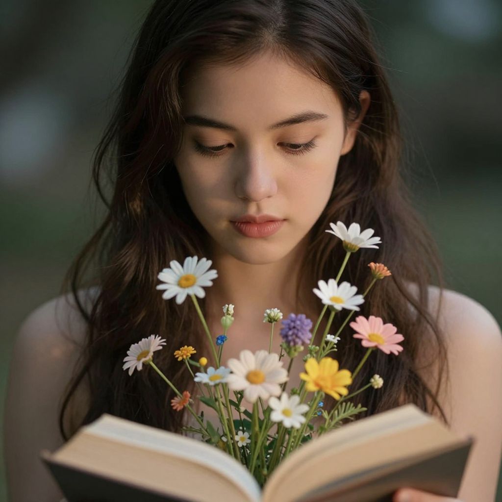 Close-Up Shot On The Model, A beautiful fairytale of flowers growing out of a book with cinematic lighting,
