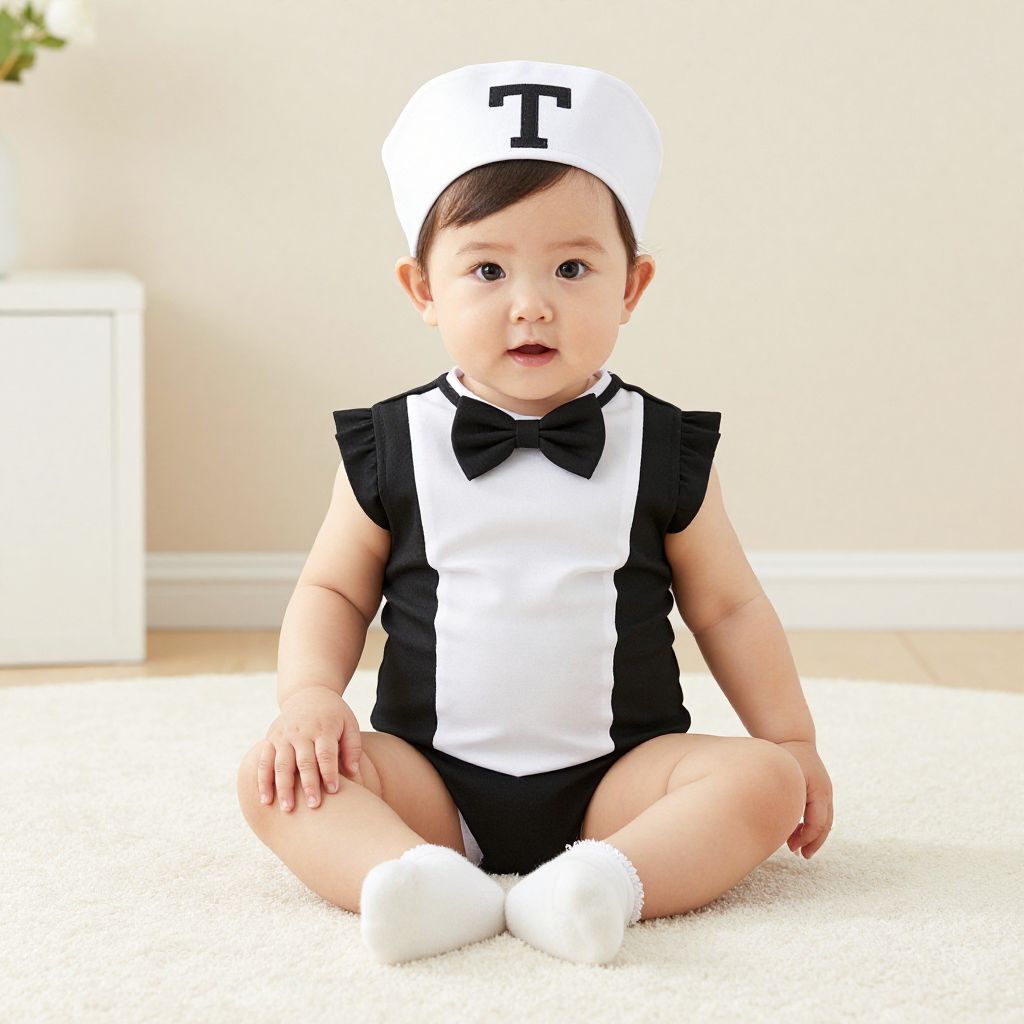 Rocker Infant Costume, little girl that is wearing a black and white outfit