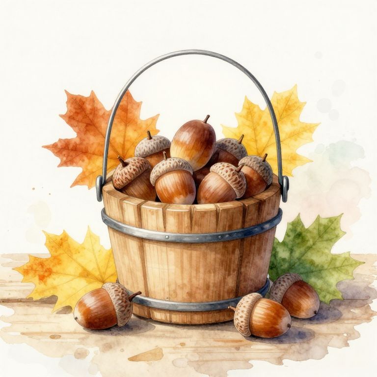 Serene Autumn Acorns Watercolor