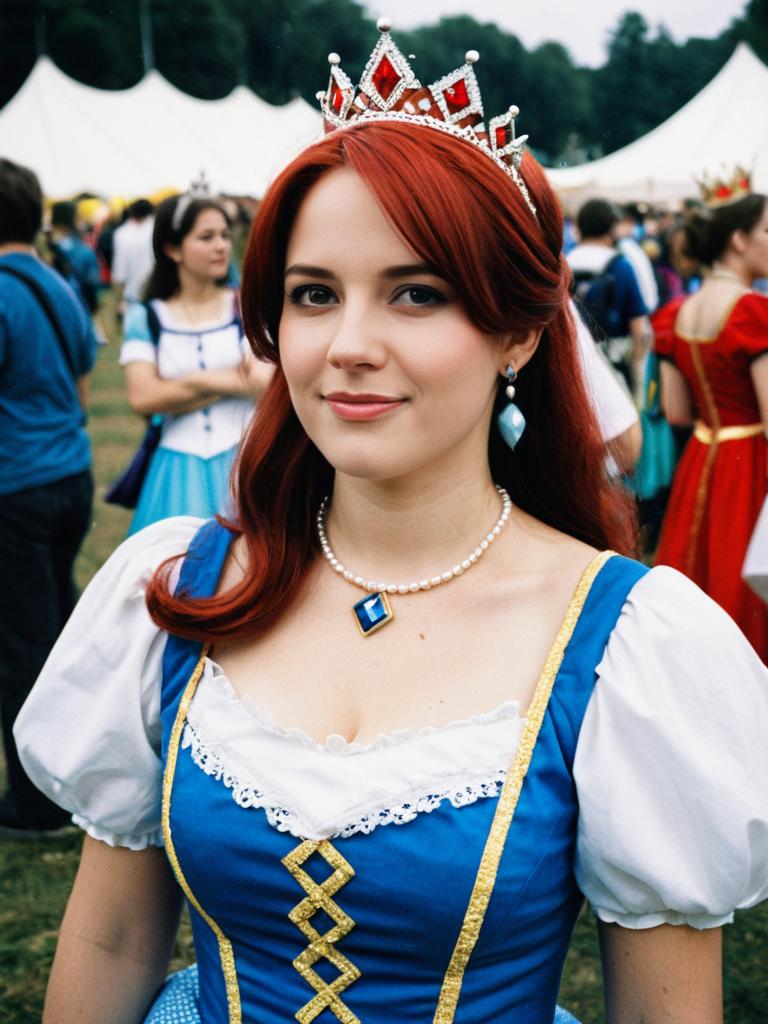 Woman in Princess Costume, candid cosplay portrait at festival