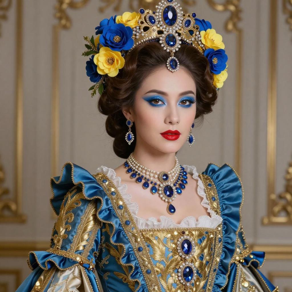 Regal Woman in Blue and Gold Royal Attire